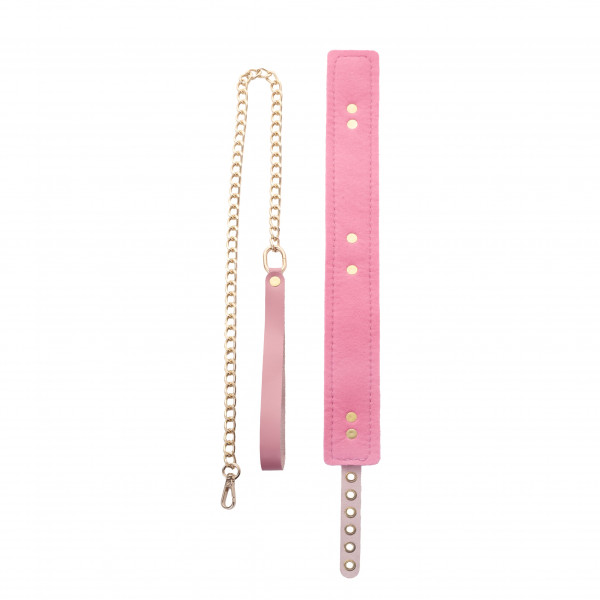 Ошейник с внутренней отделкой + поводок "Crazy Handmade" розовый, кожа