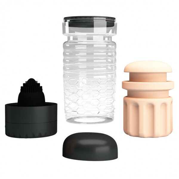 Колба мастурбатора выполнена из ABS-пластика и закрыта плотно крышкой. При вскрытии, открывается потрясающая картина супер реалистичная вагина! Далее, пройдя сквозь вагину, половой член, а именно головка, касается нежнейшей россыпи силиконовых шипов в центре которых силиконовый язычок! Язычок и шипы с вибрацией!