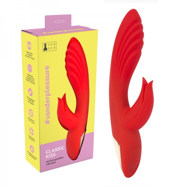 Вибратор для точки G и клитора "Slimline Kissing" рельефный, красный